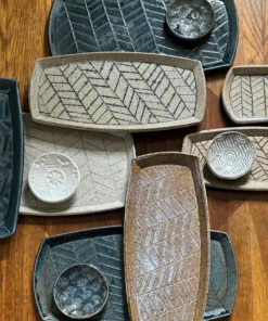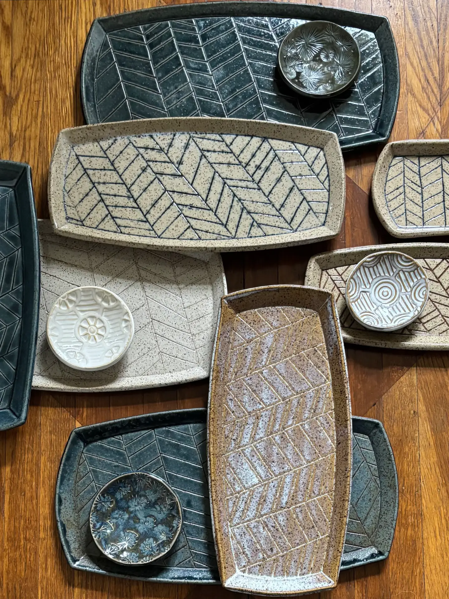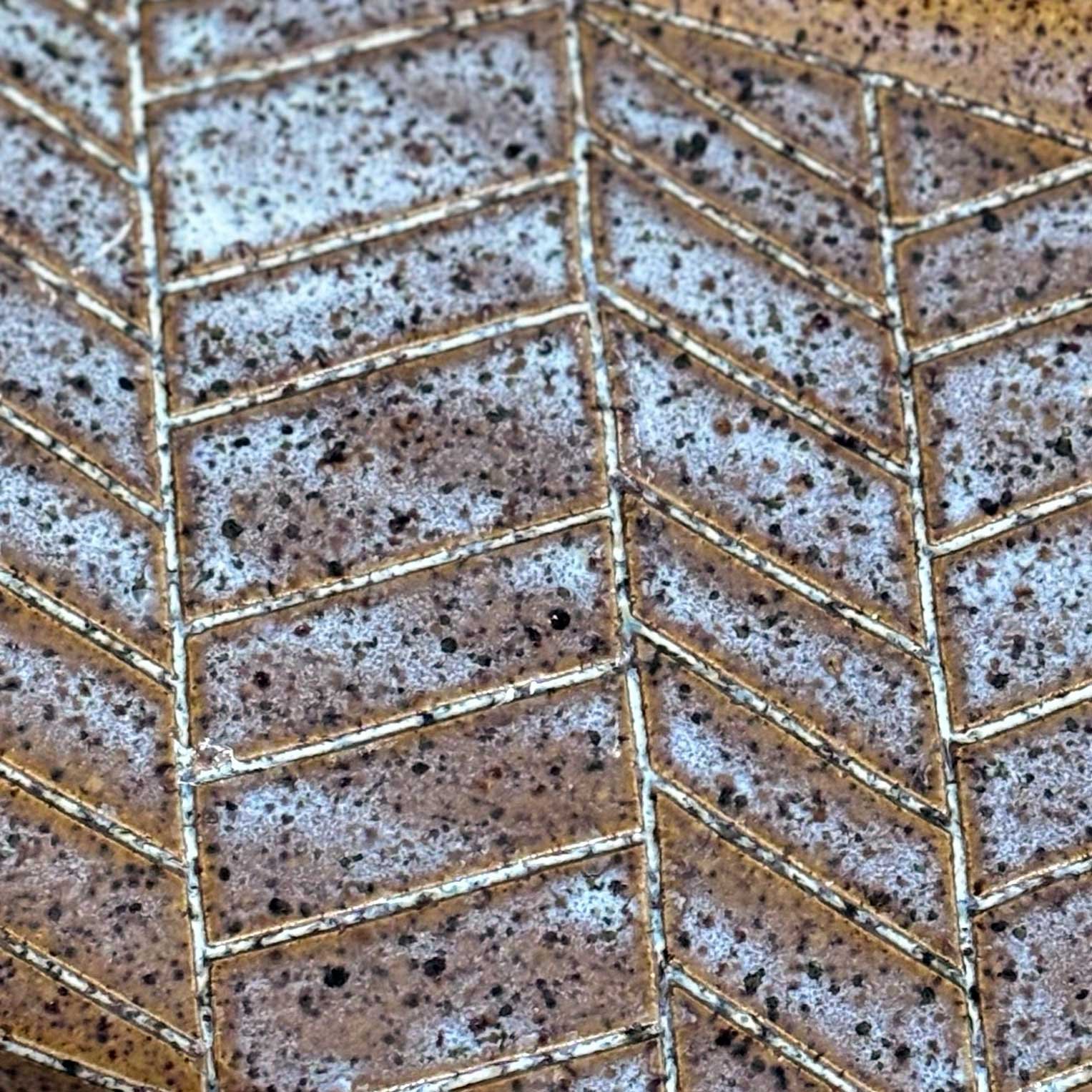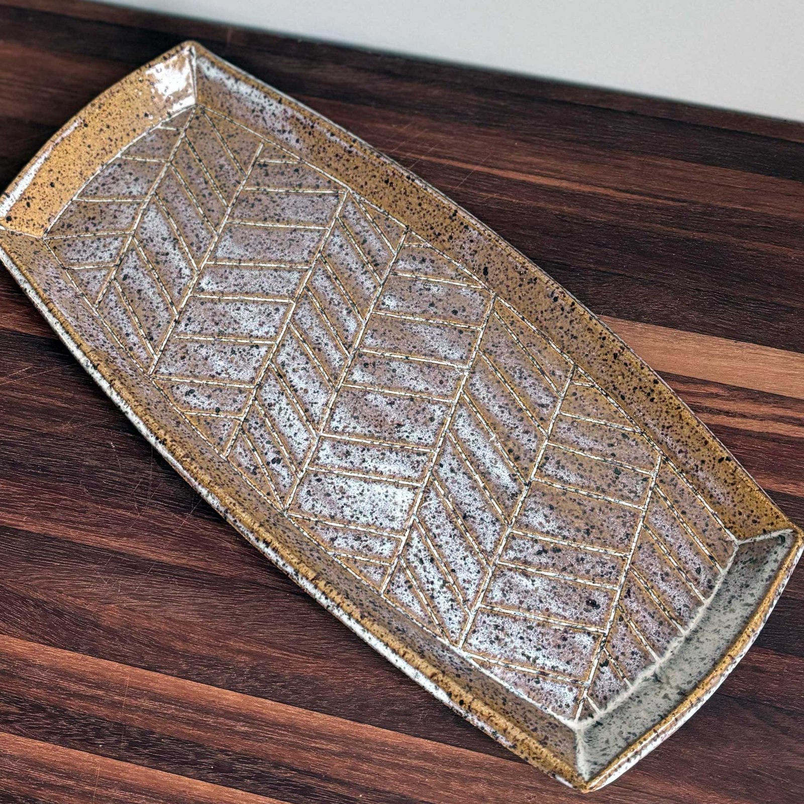 This is the MEDIUM handbuilt slab platter with hand carved pattern.