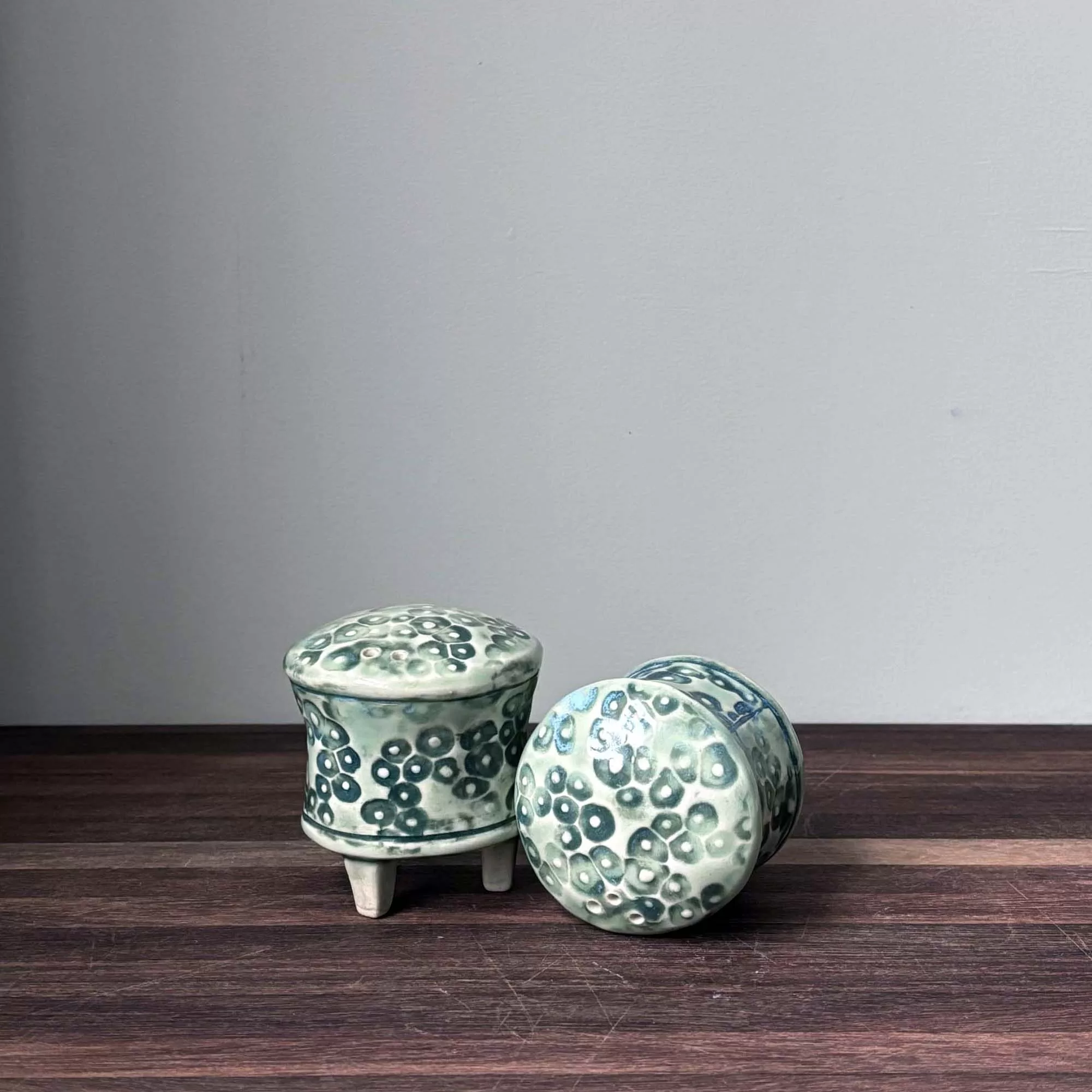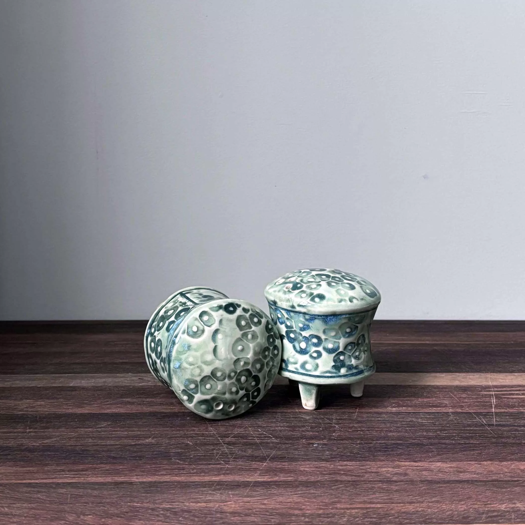 Handbuilt salt and pepper set.