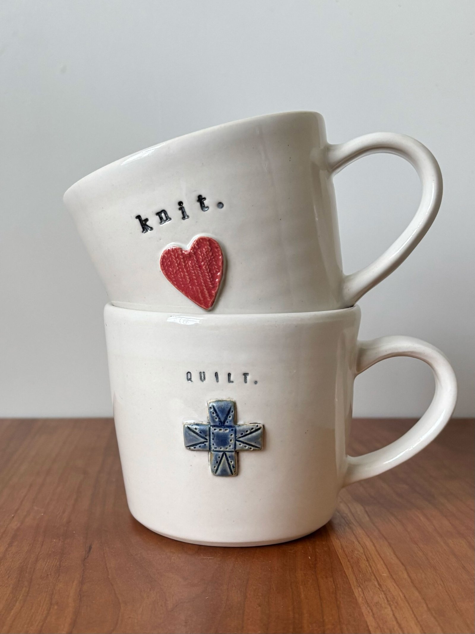 | MUG DESIGN | Blue Quilt, Raspberry Knit |