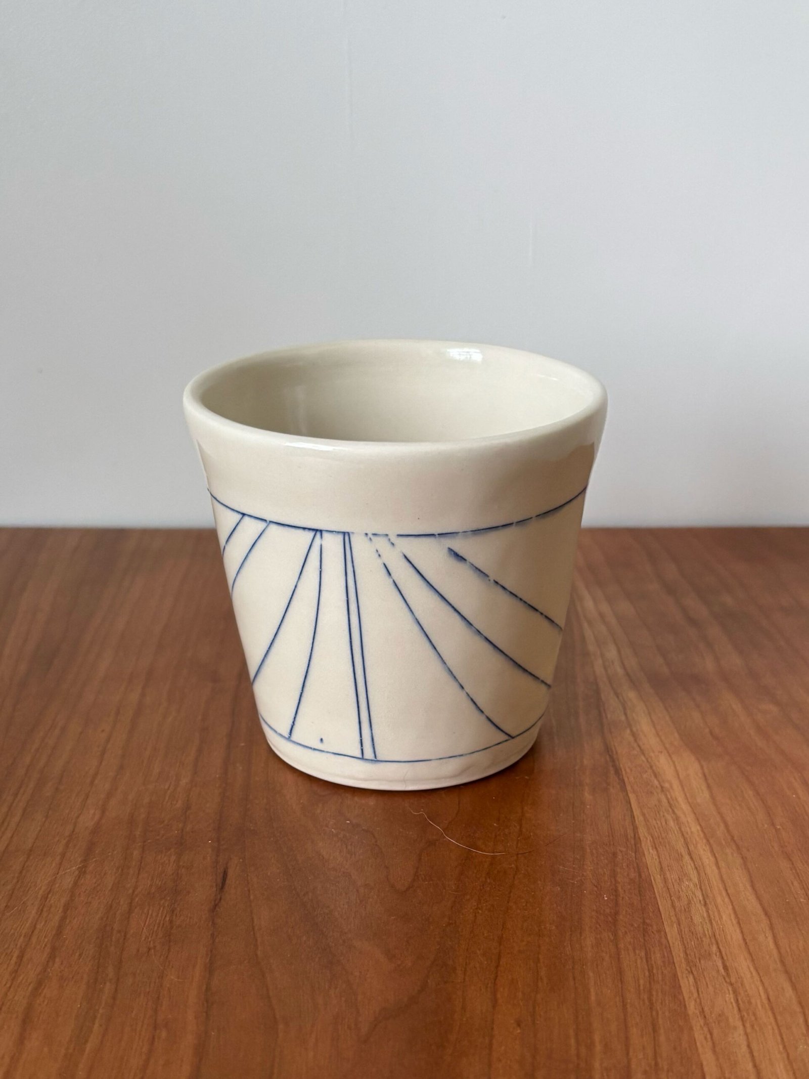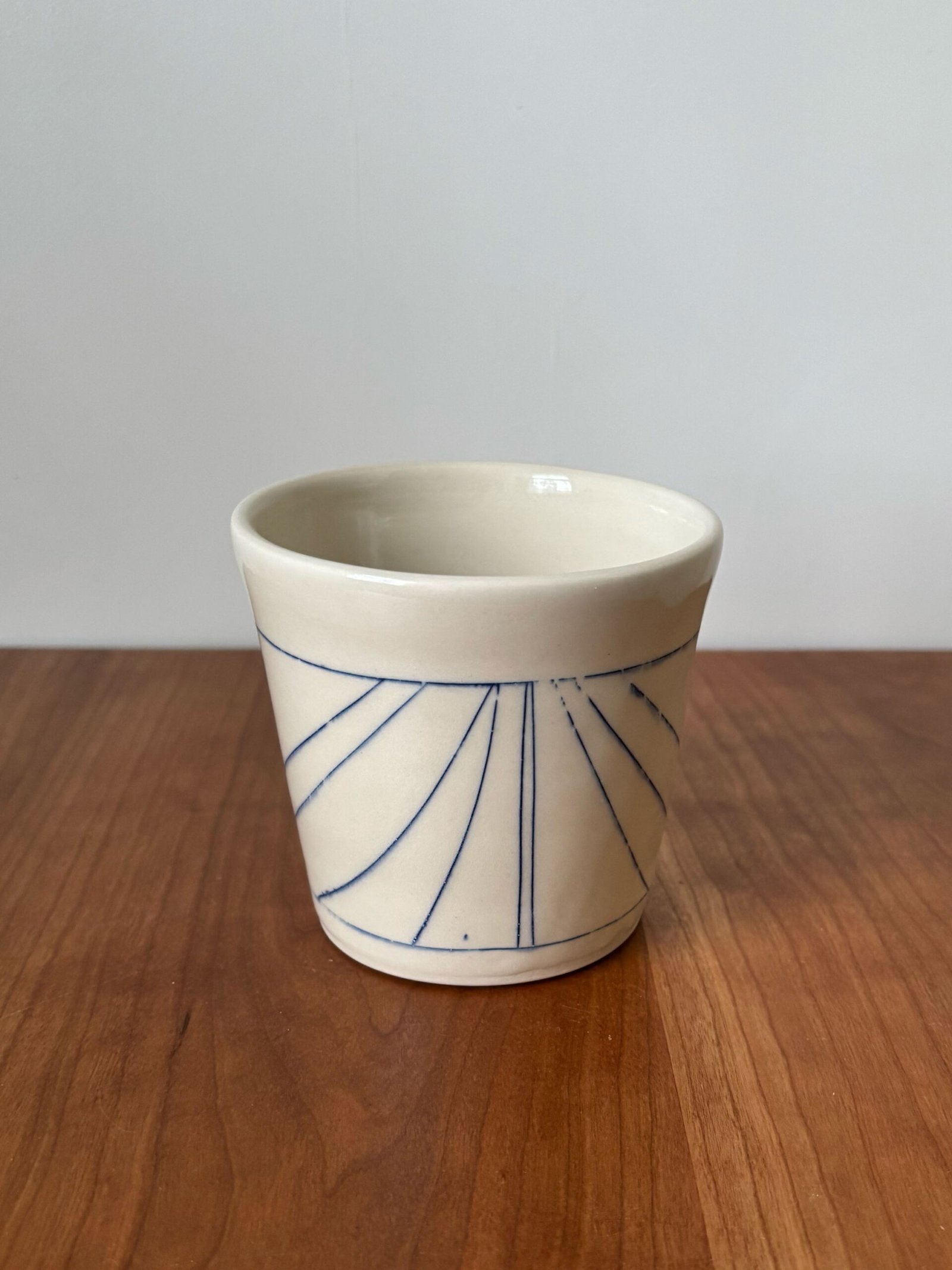 Delicate blue inlay pattern reminiscent of the lines and sails of a ship.